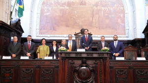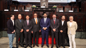 A solenidade, realizada no Palácio Tiradentes, foi proposta pelo Deputado Estadual Jorge Felippe Neto e contou com a presença de autoridades e representantes do setor imobiliário e condominial que celebraram esta justa homenagem.